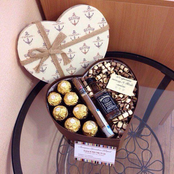 Вы также можете порадовать его шоколадными инструментами – такой вкусный набор обязательно произведет впечатление на именинника.