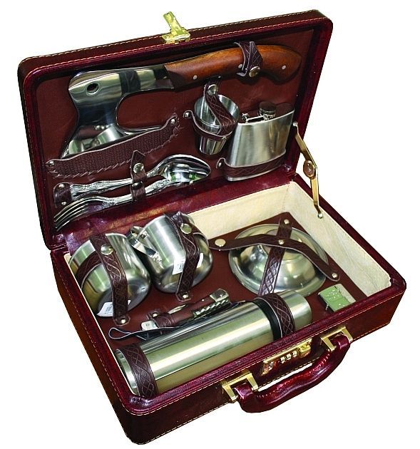Прочный футляр с минимальным набором посуды – чем не сюрприз для заядлого путешественника, рыбака или туриста? Такой предмет легко поместится в рюкзаке, не займет много места в багажнике машины, а главное – позволит устроить полноценный пикник с друзьями.
