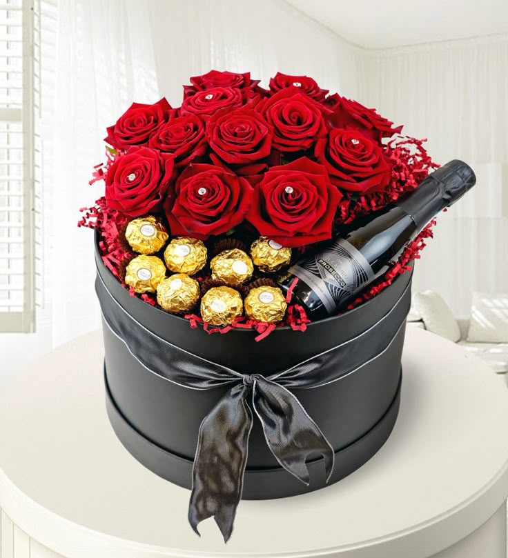 - Можете создать ансамбль из цветов и другого подарка — например, преподнести корзину цветов вместе с дорогим коньяком.