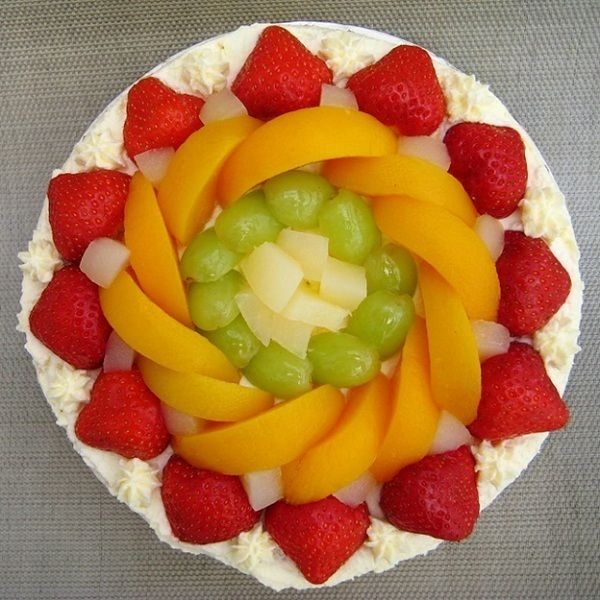 Оформление десерта превосходно украсит торжественный стол и дети от легких, фруктовых салатов приходят в восторг.