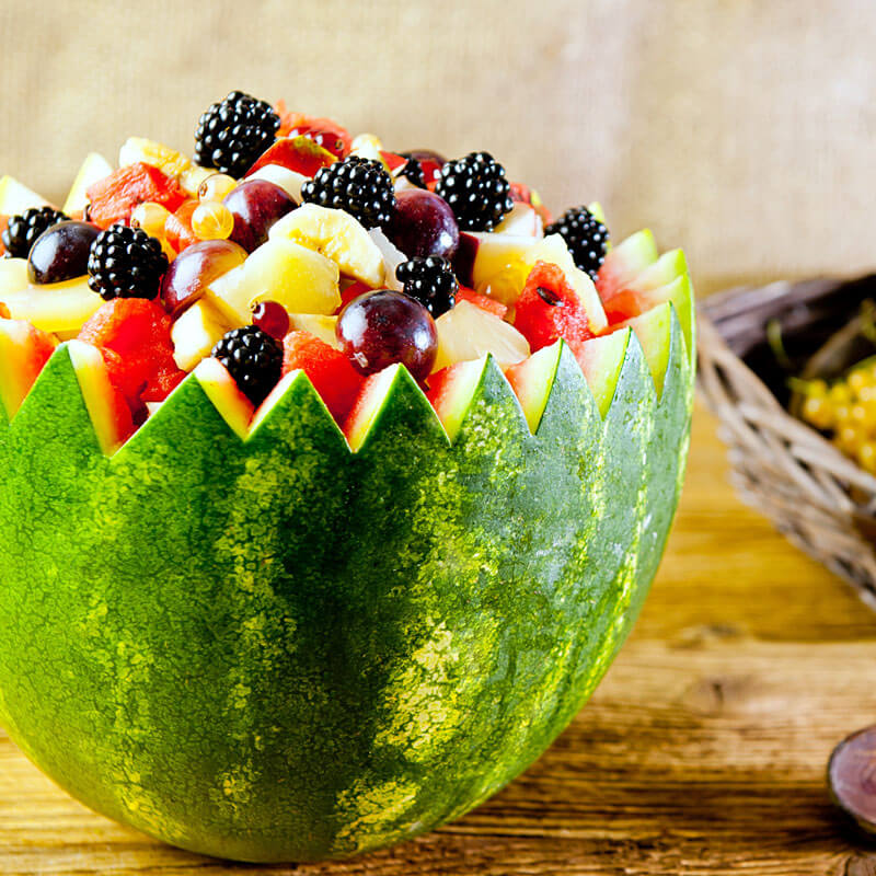 Фруктовый салат на день рождения — вкусный и витаминный десерт из свежих, лакомых фруктов обеспечит витаминную подзарядку непосед, а оригинальное оформление придает особую торжественность мероприятию.