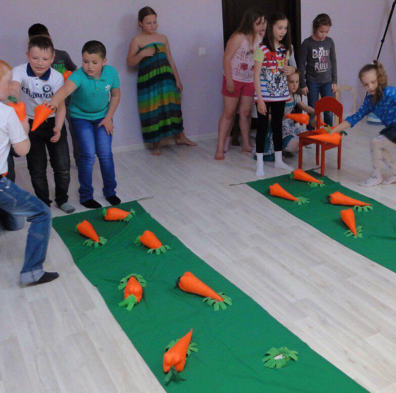 Передача апельсина происходит без помощи рук – подбородком или плечом. Участник, уронивший предмет, выбывает из игры. Победителями будут двое оставшихся игроков.