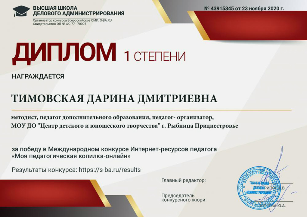 Каждая представленная на конкурс работа будет оценена жюри по достоинству. Каждый участник конкурса будет награжден дипломом Победителя.