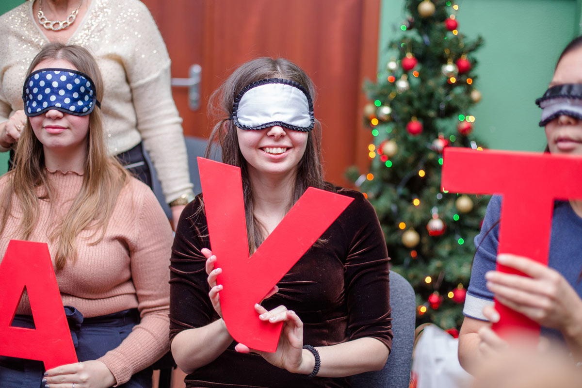 Одно из лучших, на мой взгляд, заданий — «На лбу написано». К специальным очкам крепится карточка с загаданным словом, поворачиваешься к тому, кто сзади и пытаешь ему показать, что за надпись красуется у него на голове. Капитан команды наших соперников никак не мог отгадать слово рюмка — он называл её «стограммулечкой», «бокалом», как угодно. Я тоже растерялась, увидев слово «шахматы», но тут ведущий пришёл мне на помощь и предложил вместе показать загаданное понятие. А потом я получила искреннее удовольствие, наблюдая, как моя начальница пыталась показать дождь, эротично изгибаясь в разные стороны и посвистывая. Я даже забыла, что надо угадывать — залюбовалась.