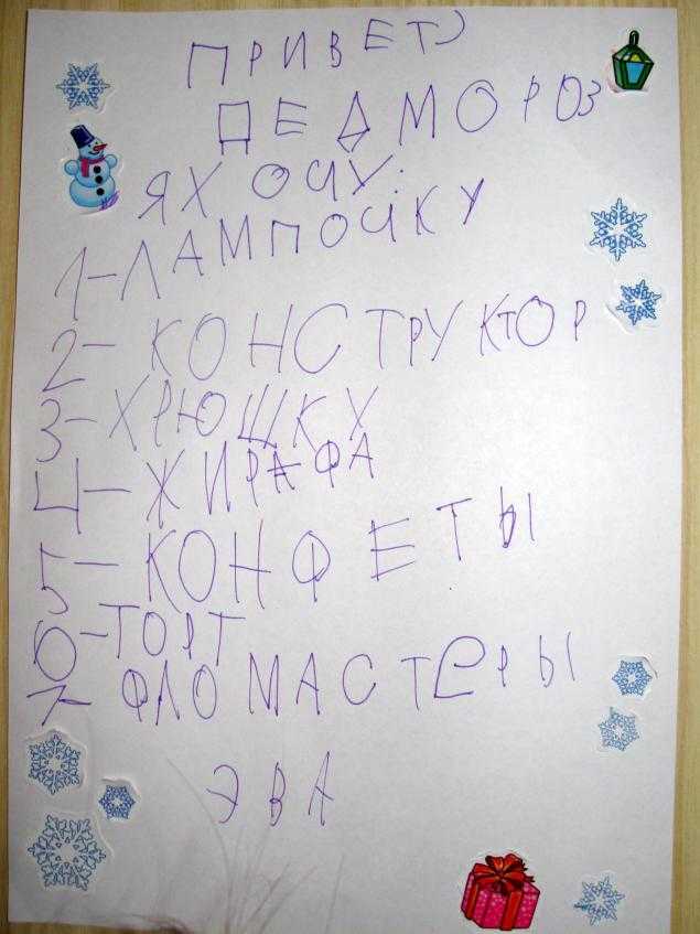 Впрочем, если старший ребёнок хочет попросить подарок для младшего в семье, который пока не умеет писать, пусть укажет в письме и пожелания братика или сестрички. Забота о близких уместна всегда, а в канун Нового года — особенно.