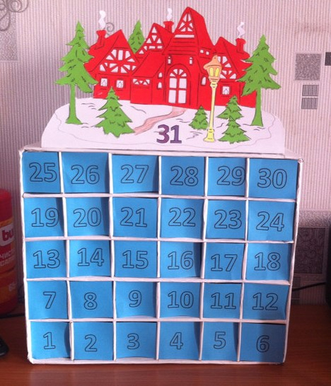 Этот адвент-календарь скрасит долгие декабрьские вечера. Ведь каждый вечер вы сможете потихоньку создавать свой собственный огромный объемный новогодний городок! А если провести в нем светодиодную гирлянду или снабдить светодиодными свечами… Все соседи и просто прохожие, глядя на ваше окно, где на подоконнике светится такая красота — будут заряжаться новогодним настроением.