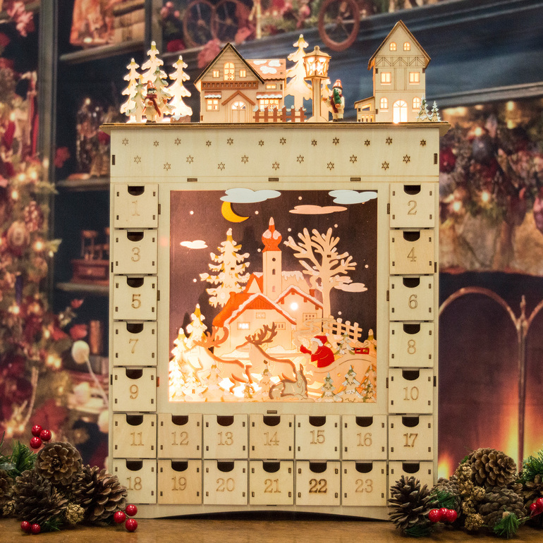 Деревянный рождественский адвент-календарь с обратным отсчетом до Нового Года