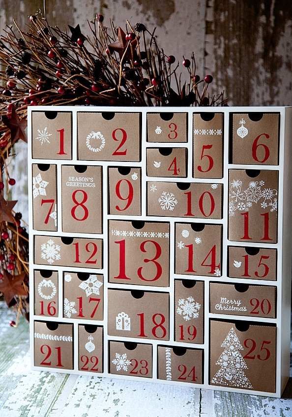 Этот адвент можно купить уже готовым и лишь придумать, как его обыграть в интерьере, а можно купить электронную версию и распечатать самостоятельно (выйдет по сути столько же, если только у вас нет безграничного доступа к цветному принтеру и хорошей бумаге).