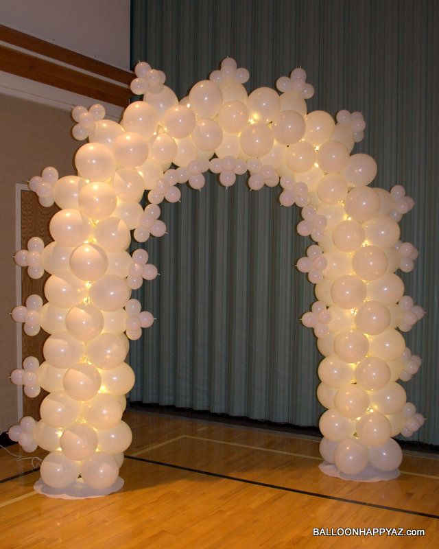 Заставь его сиять. Попробуйте сделать арку из фольгированных шаров, переплетенных с нитями белых огней. Свет будет отражаться от фольги и излучать приятный блеск, который добавит праздничности.