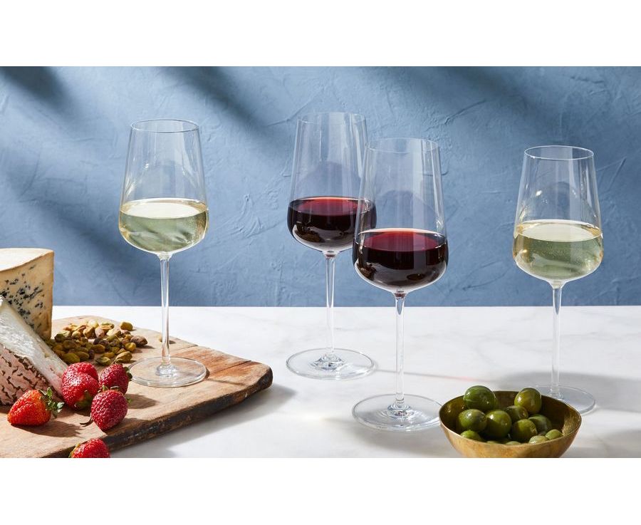 Бокалы вина на белом фоне, вид сверху. ПРЕМИУМ