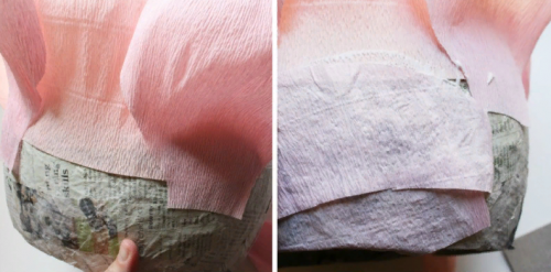 - Приклейте кусочек гофрированной бумаги к стеблю в качестве сердцевины.
