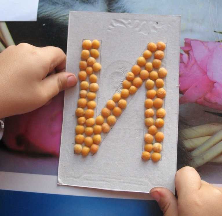 Готовый шаблон покрывается клеем ПВА и заполняется не бумагой, а цветной крупой или блестками, мелким бисером и семенами растений.