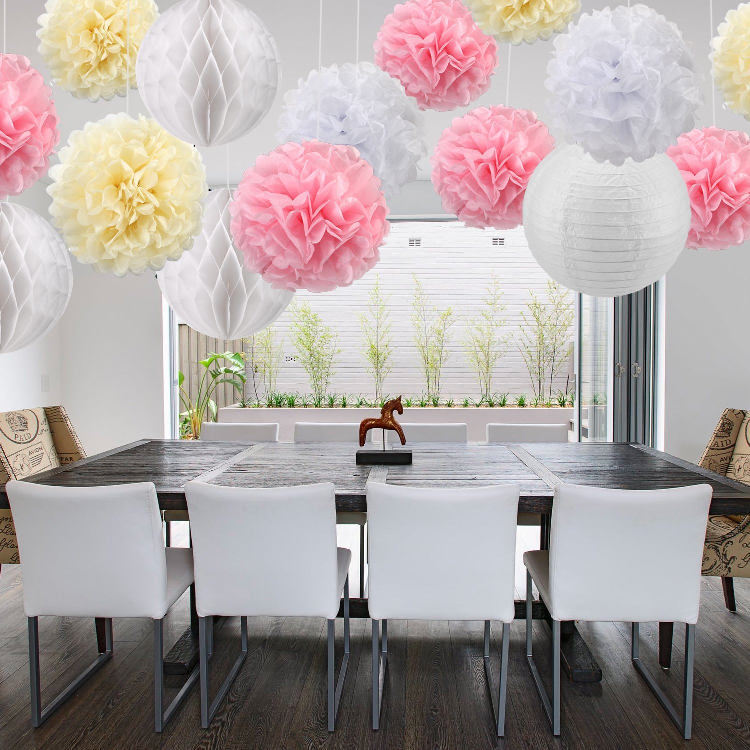 С помощью бумажных фонариков, бумажных помпонов и других бумажных украшений вы создадите сказочное украшение для своего большого дня! И у нас так много уникальных цветов, что вы можете быть уверены, что создадите уникальный предмет декора для памятного события.