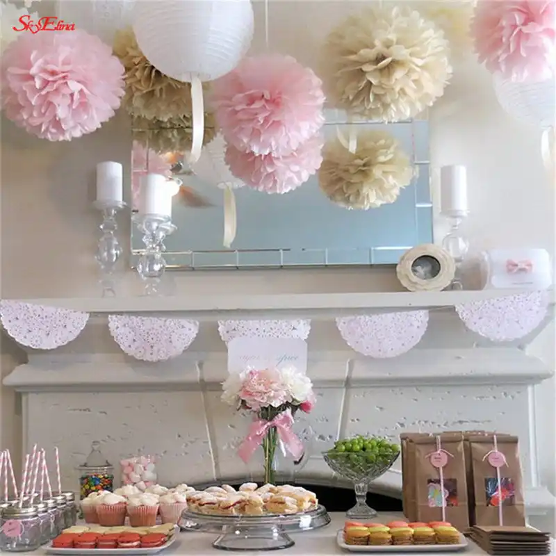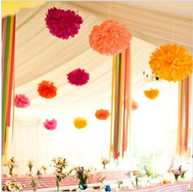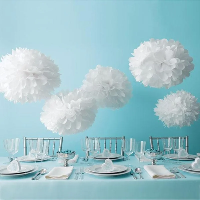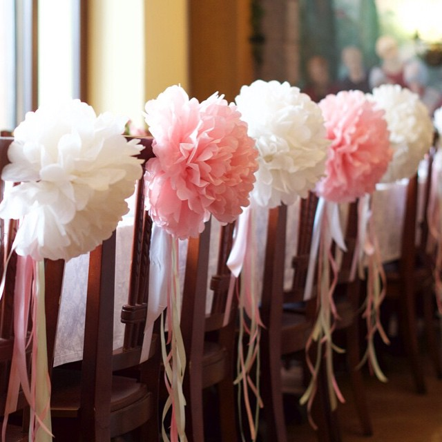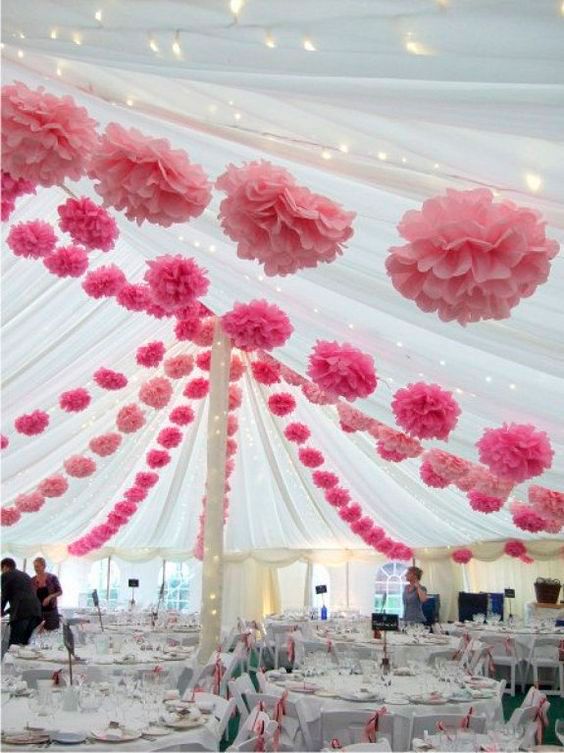 Нынешние дизайнеры придают особое значение шарикам из бумаги. Хотя применять их в свадебном стиле стали совершенно недавно. В большинстве случаев, они дополняют потолок, все потому, что благодаря своей незамысловатой округлой форме, они визуально расширяют помещение и создают яркий вид. Шарики данного типа помогут преобразить скучный потолок в яркую атмосферу.