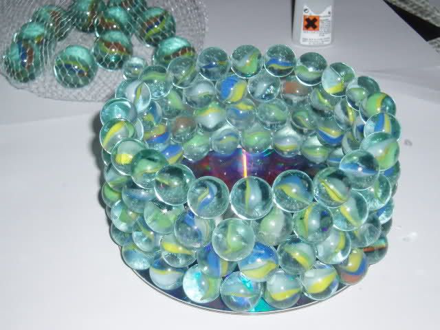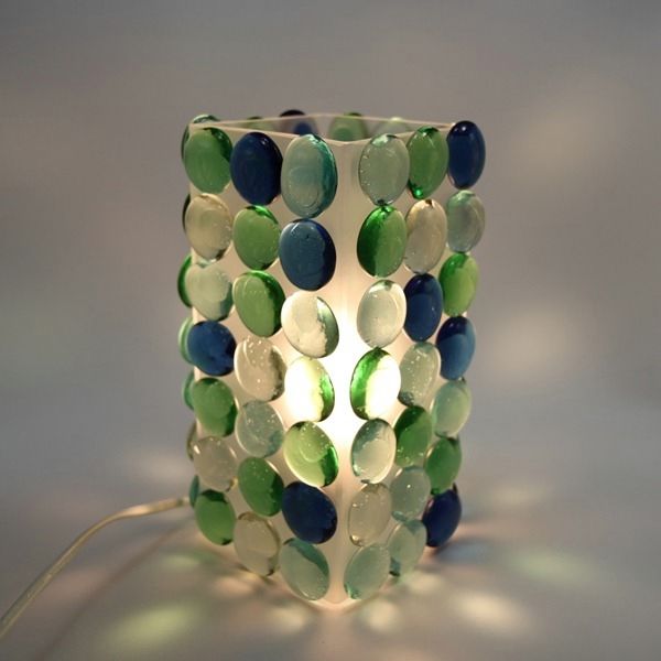 Еще больший простор для творчества открывают разноцветные стеклянные шарики. Их можно наклеивать на различные предметы интерьера: подносы, цветочные горшки, вазы, рамки для фотографий и светильники, выкладывая узоры одним цветом или комбинируя наподобие мозаики.