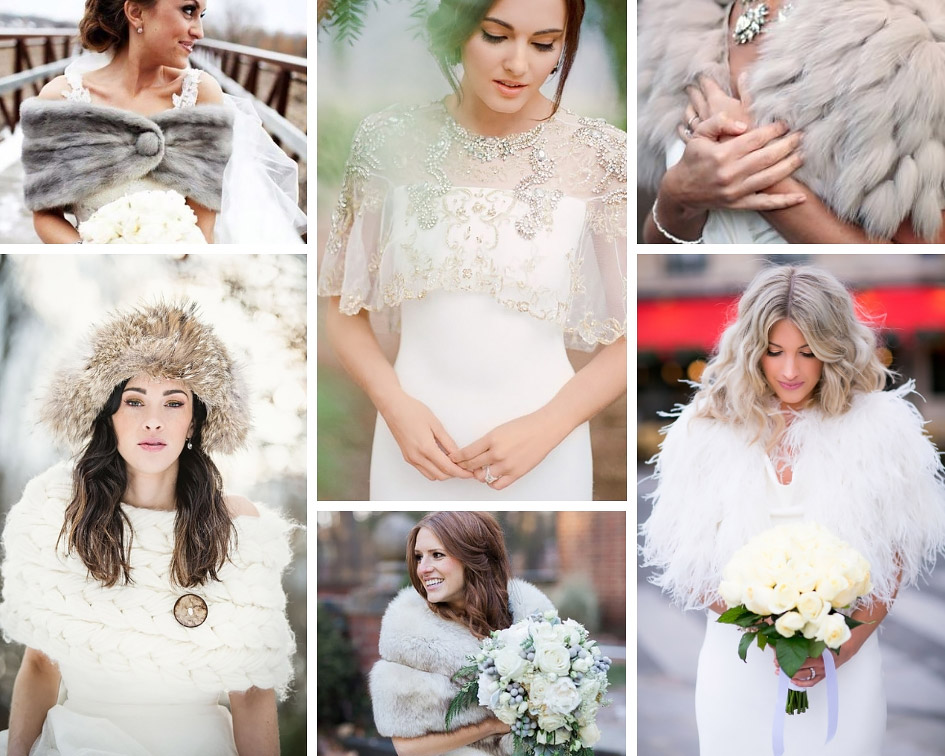 Такие короткие накидки являются отличной идеей для ноябрьской свадьбы.
