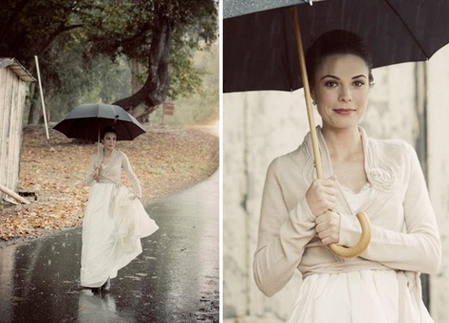 Если столбик термометра все же стремится ниже «нуля», рассмотрите вариант пальто или легкого плаща. Такую одежду можно надеть поверх свадебного наряда на прогулку, если солнышко откажется выглядывать в свадебный день.