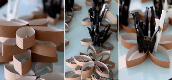 Цветы из втулок из-под туалетной бумаги