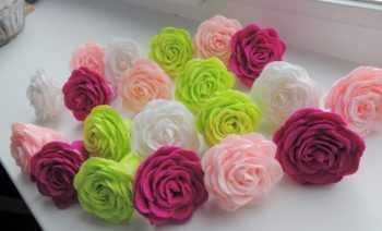 У вас получится нежный и пышный пион. Но можно сделать и розы. Цветы такие делаются достаточно быстро, но выглядят эффектно, внушительно.