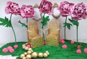 Как правило, в первую очередь украшают занавес, стены и шторы. Если вы планируете украшать сцену, то цветы следует расположить в глубине и на входе. Еще их можно разместить вдоль рампы, и тем самым замаскировать оборудование. Красивые бумажные бутоны можно разложить по краю ковровой дорожки.