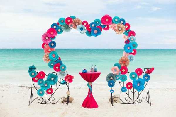Однотонная декорация будет смотреться блекло и некрасиво, а разноцветная позволит неплохо разнообразить свадебное празднество.