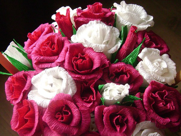 Цветы из гофрированной бумаги — это искусство, к которому приложить руку может каждый. В основном бумажные цветы используются для украшения подарков. Ими декорируют настенные часы, панно, фоторамки, шоколадки, коробки, делают полноценные букеты и букеты из конфет (в середину цветов прячут конфеты).