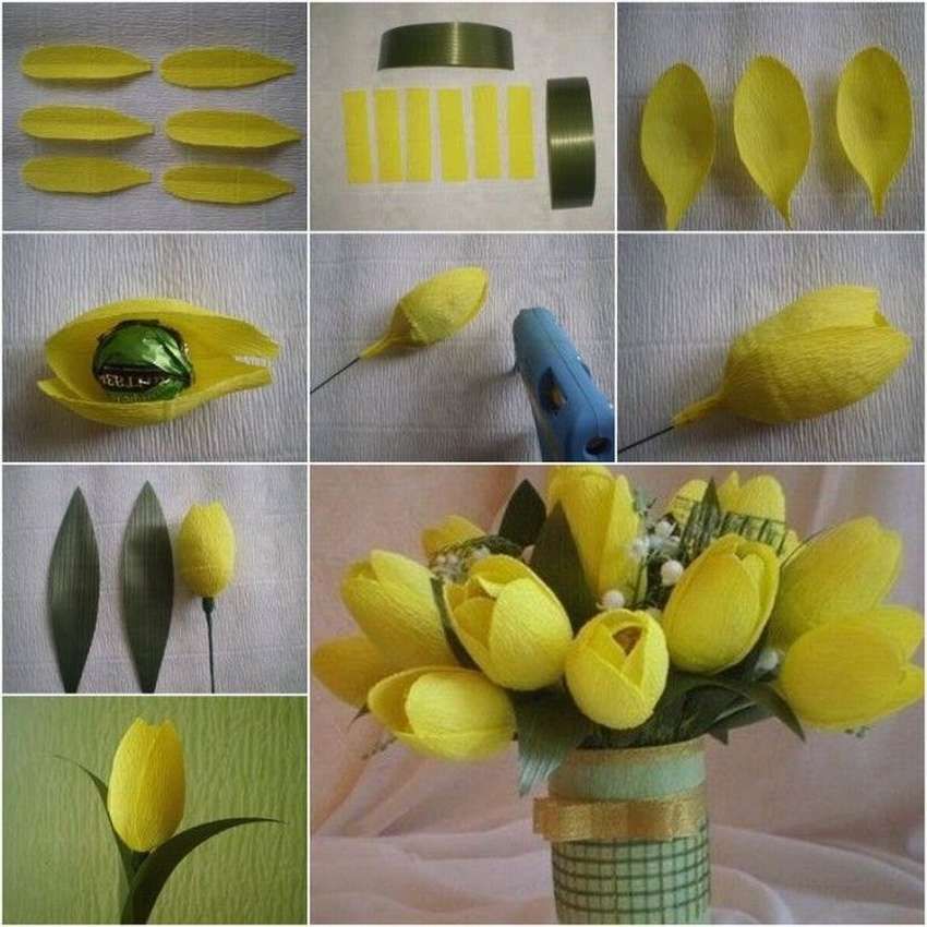 Несмотря на то, что восьмое марта давно прошло, прекрасные тюльпаны из бумаги остаются незаменимым атрибутом весны, весеннего настроения, свежести и яркости в доме. Много схем по изготовлению красивых и простых тюльпанов из бумаги было перепробовано. Быстрые, замудреные, но подобранный мастер-класс проще.