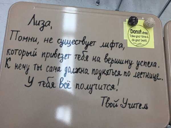 Учитель каждый день пишет на партах своих учеников мотивирующие послания