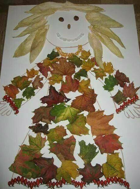 Соберите красавицу-осень из разных ярких листьев, ягод и цветов. Сделайте основу-рисунок и разрешите ребенку приклеить природный материал в виде прически или одежды. Таким образом можно создать портрет всей вашей семьи!