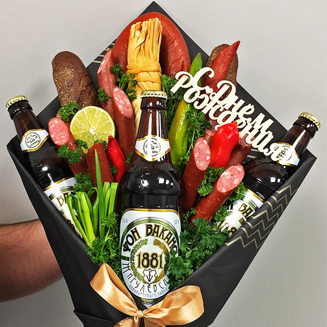 Путь к сердцу мужчины лежит через его желудок, а корзинка для деликатесов обязательно понравится любому мужчине, который любит вкусно поесть. Наполните его его любимыми закусками, сырами, мясом, шоколадом и вином и обязательно приложите рукописную записку о том, как сильно вы его любите.
