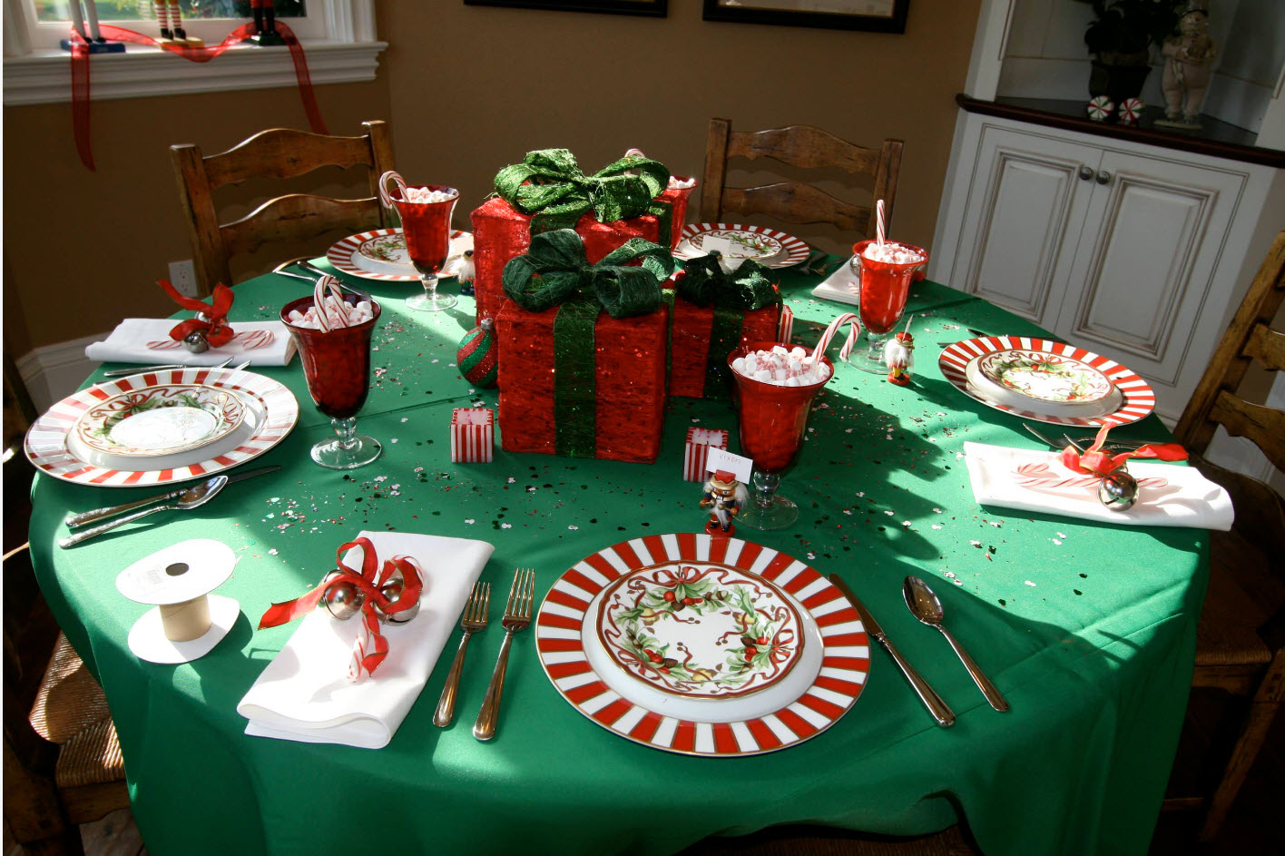 Необычное обыгрывание праздничного цветаБудь то традиционные красные и зеленые цвета или более современные, такие как апельсины и темно-сливовые цвета, расставив их по всему столу, вы действительно придадите своему столу уникальный вау-фактор. стол.