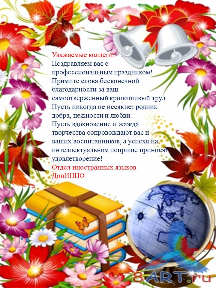 Поздравляю с Днем учителя! Долг представителя этой профессии не только давать знания, но также учить школьников гуманности и правильному отношению к жизни. Верю, что из твоих учеников вырастут хорошие люди!