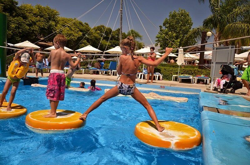 В аквапарке расположены три бассейна. Гости останутся в восторге от гидромассажного бассейна, представляющего собой вместительное джакузи. Вокруг него обустроена зона для принятия солнечных ванн. Глубина большого бассейна составляет сто сорок сантиметров.