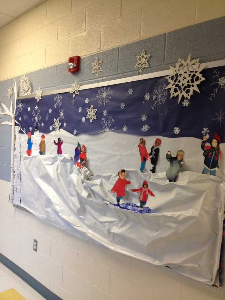 В украшении класса нельзя никак забыть про стены. В каждом классе на стенах размещены специальные пособия и обучающие материалы. Если в вашем классе стены оформлены именно таким образом, то для украшения в этом случае используется дождик. Но если стены имеют много свободного пространства, тогда можно сделать имитацию снега и сказочного снеговика. Снег делайте из ватных дисков. К стене они приклеиваются на скотч.