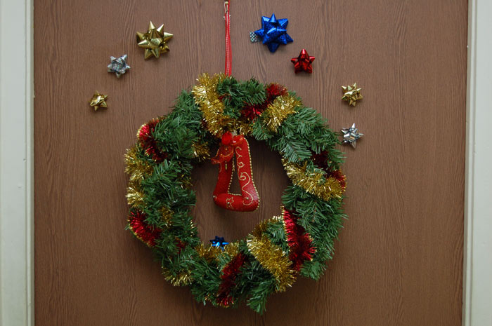 - С разбросанными повсюду красными рождественскими носками – на стенах, подоконниках, перилах лестниц.