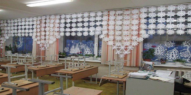 Окна в классе также являются тем элементом, который требует должного украшения.