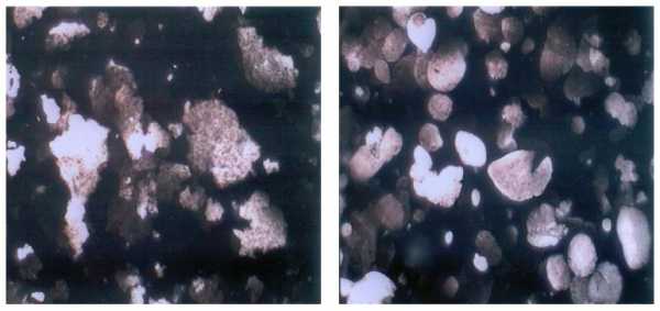 Алюминиевые частицы неправильной и правильной формы. Первые обычно называют «кукурузными хлопьями», вторые — «серебряным долларом»