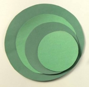 ΠΠΎΠ·ΡΠΌΠΈΡΠ΅ ΡΠ²Π΅ΡΠ½ΡΡ Π±ΡΠΌΠ°Π³Ρ Π΄Π²ΡΡ ΠΎΡΡΠ΅Π½ΠΊΠΎΠ² Π·Π΅Π»Π΅Π½ΠΎΠ³ΠΎ. ΠΠ°ΡΠ΅ΠΆΡΡΠ΅ ΠΈΠ· Π½Π΅Π΅ ΠΊΠΎΠ½ΡΠ΅Π½ΡΡΠΈΡΠ΅ΡΠΊΠΈΡ ΠΊΡΡΠ³ΠΎΠ² ΡΠ±ΡΠ²Π°ΡΡΠ΅Π³ΠΎ ΡΠ°Π·ΠΌΠ΅ΡΠ°. ΠΠΎΠ»ΠΎΡΠΈΡΡΠΎΠΉ ΠΈΠ»ΠΈ ΡΠ΅ΡΠ΅Π±ΡΠΈΡΡΠΎΠΉ ΠΊΡΠ°ΡΠΊΠΎΠΉ Π»ΠΈΠ±ΠΎ Π±Π»Π΅ΡΡΠΊΠ°ΠΌΠΈ ΠΎΡΠΎΡΠΌΠΈΡΠ΅ ΠΊΡΠ°Ρ ΠΊΡΡΠ³ΠΎΠ².