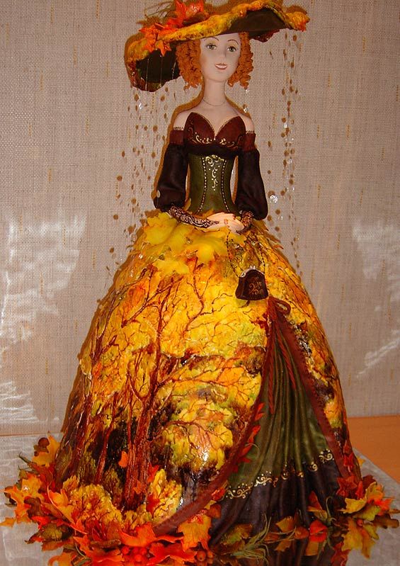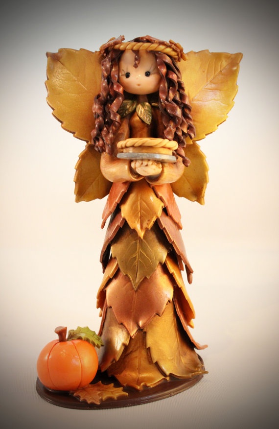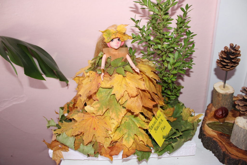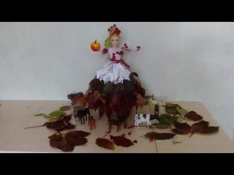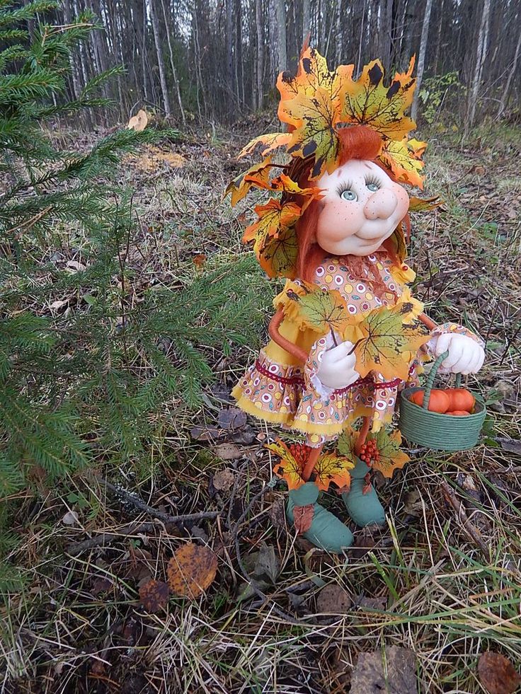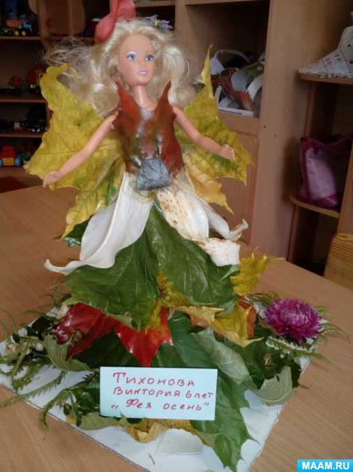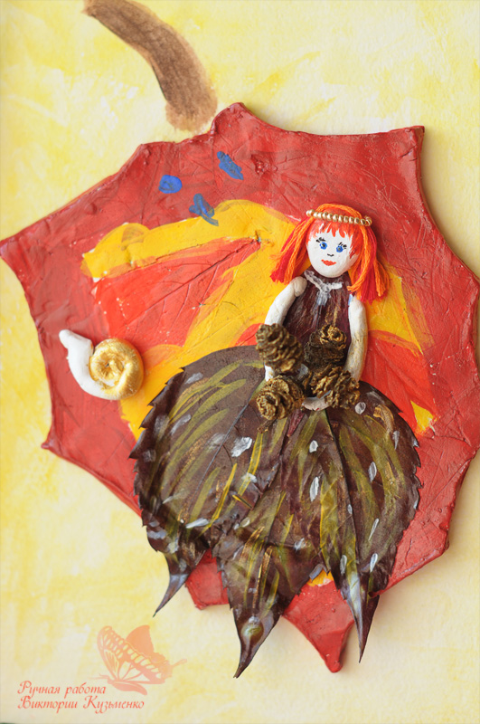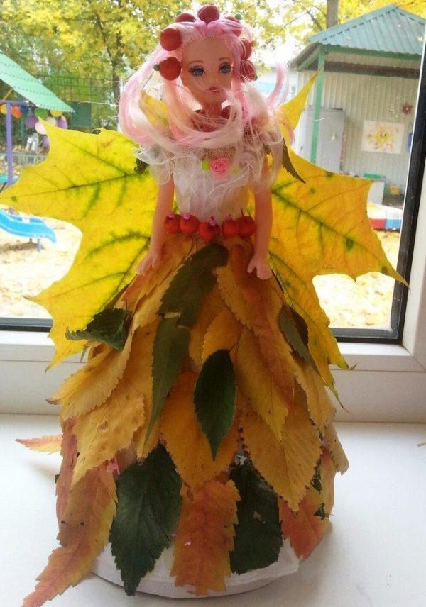 - Обратите внимание на юбочку из листьев Гинкго Билоба и букет из люфы в руках милой феечки!