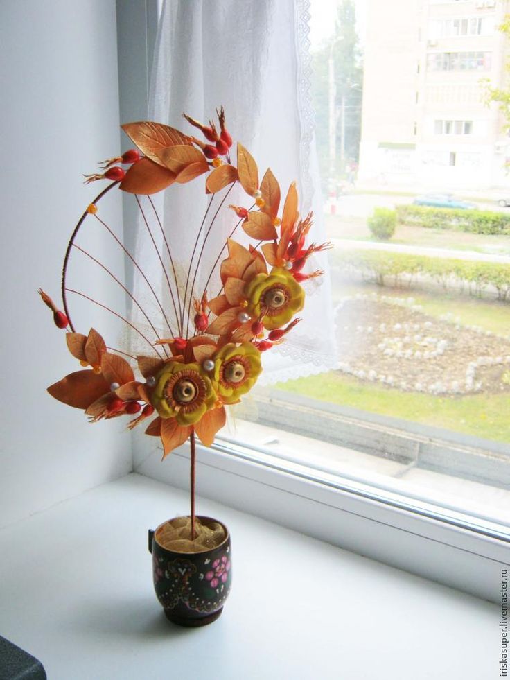 Для того мы используем проволоку, создаем ей искривленную конусообразную форму. Оберните конструкцию тканью и склейте краешки при помощи клея пистолета. Ткань покройте красной акриловой краской. Каркас нужно закрепить на подставке. В этой поделке ей стал спил дерева. Готово!