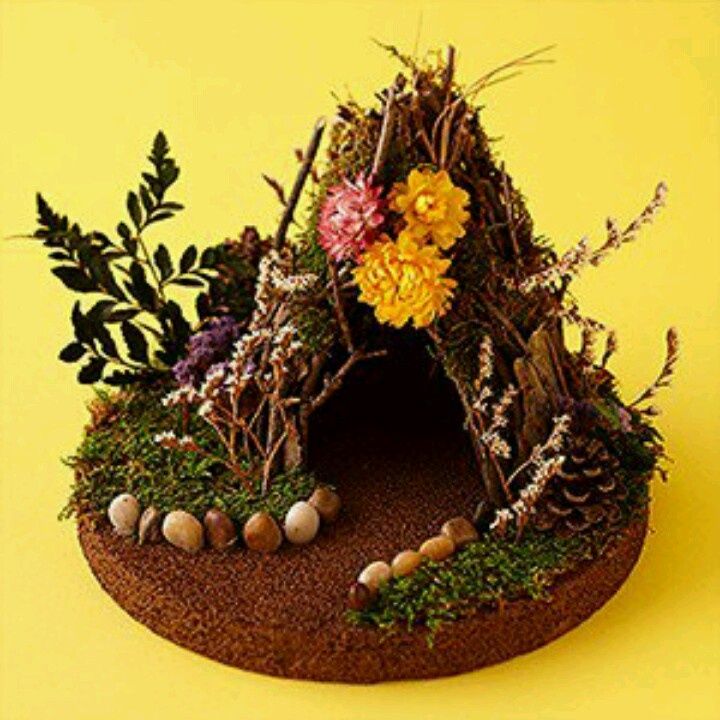 Хорошо иметь разные материалы – одни для строительства, другие для крыш, некоторые для отделки. Избегайте «неестественных» вещей, таких как пистолет с горячим клеем, ленты или палочки для рукоделия. Сохраняйте естественность, это то, что феи любят больше всего. И помните, феи любят много двигаться, поэтому ваш дом не должен стоять вечно!