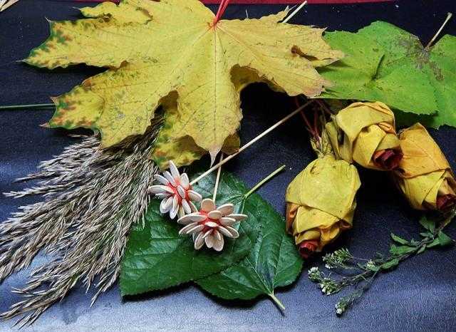Несколько слов о заготовке природного материала: помимо шишек и желудей, обязательно сохраняйте лепестки цветов, соцветия и листья, которые можно покрывать парафином и, тем самым, добиваться отличной консервации их цвета и придания жесткости.