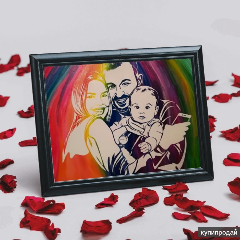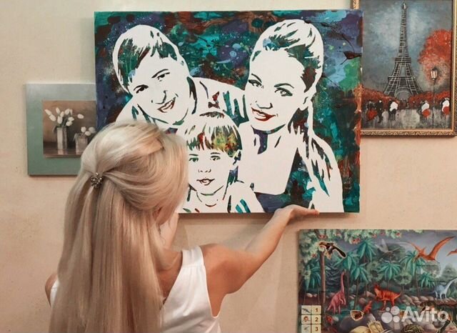 Покупал картину по фотографии на новый год жене! Теперь любуемся семейным портретом!!