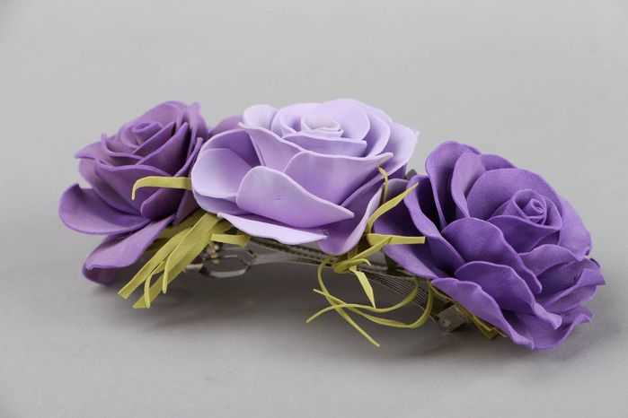 - Фоамиран. Поскольку он является нежным изделием, он может с легкостью изменить форму под воздействием теплоты рук. Чтобы придать материалу более сложную форму, задействуют специальные нагревательные приборы. Его используют при декорировании цветочных композиций, а также изготовлении различных предметов.