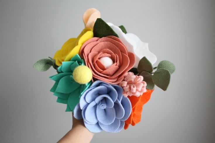 - Фетр. Является материалом для флористики, который достаточно плотный, мягкий и легкий. Его задействуют при создании высоких и объемных букетов.