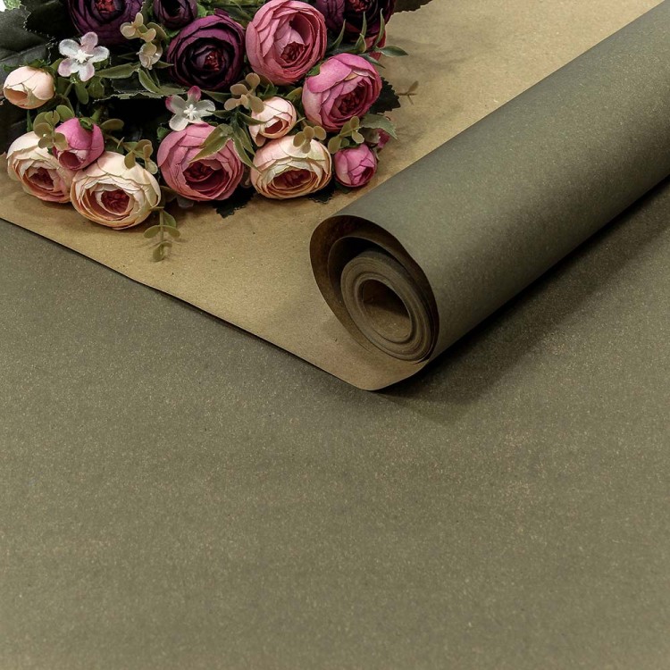 - Крафт-бумага. Может быть декоративной либо транспортировочной, а также с нанесением принта либо надписи. Поскольку это бумага, она может намокнуть, если на нее попадет вода со стеблей.