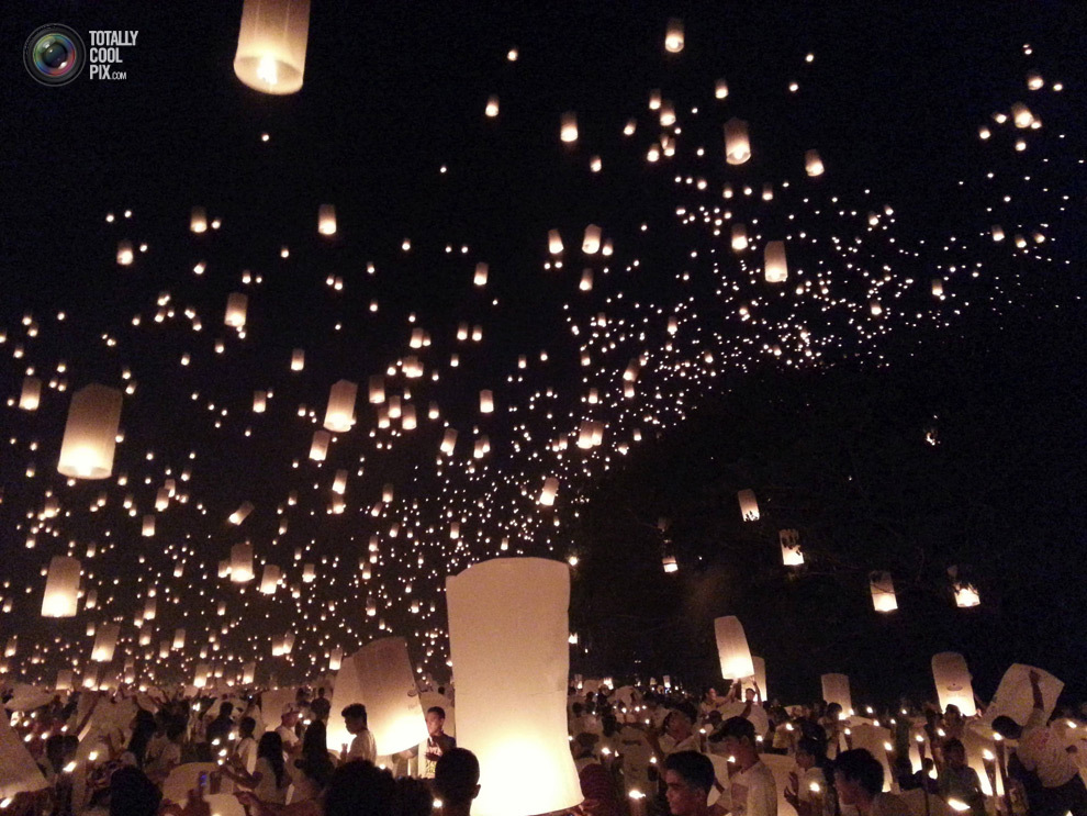 В Таиланде летающие фонарики запускают практически на все праздники, но больше всего их в небе в праздник лодочек (праздник света и воды). Отпуская фонарик в небо, люди загадывают желания.