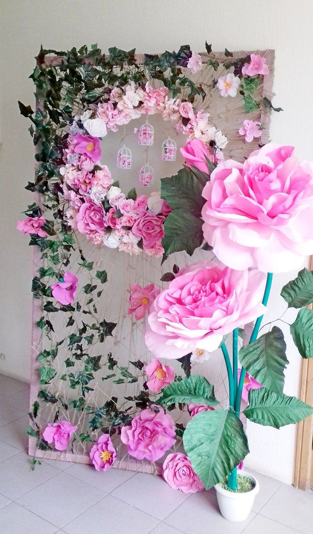 В данной статье мы подробно покажем как можно сделать своими руками гигантский бумажный цветок, который можно использовать в качестве декорации как на стене или ширме, а также на ноге для украшения фотозоны или просторных помещений.