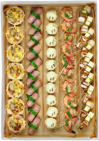 - Блюда для фуршетного стола должны быть простыми и легкими. К ним не прилагаются столовые приборы.