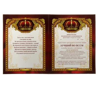 - Дорогой менеджер, поздравляем с получением этой шуточной грамоты! Теперь вы официально получили заслуженный звание «Правитель мира метрик и графиков». Не забывайте, что хотя ваша голова может быть занята цифрами, вы все еще нуждаетесь в перерывах для веселья. Пусть эта грамота будет напоминанием, о том, что всегда есть время для безделья!